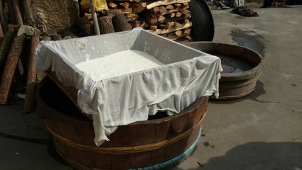 家人正在做豆漿和豆腐(安徽涇縣)