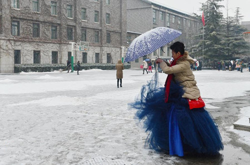 2月7日,考生在等待進入中央戲劇學院備考區。當日,中央戲劇學院藝考大幕開啟。今年共有30254人報考中戲,比2013年增加約1萬人。該校本、?朴媱澱猩595人,其中本科495人、高職(?疲100人。本科計劃招生人數較2013年擴招99人,而?苿t減招了100人。熱門的表演系話劇影視表演專業,報錄比為137:1。而廣播電視節目主持專業因為是隔年招生,今年報錄比達到159:1,成為中戲最熱門的報考專業。