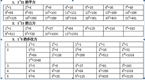 要想提高數字敏感度,首先需要熟記常見數字,在考試中主要用到的是1~21的平方、 2. 1~11的立方、1~5的多次方、100以內的質數。