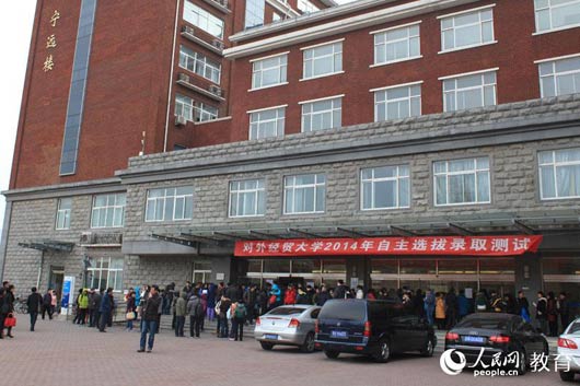 人民網北京3月1日電 (記者 郝孟佳 實習生 李京陽)今天上午八點半,對外經貿大學2014年自主招生考試正式開始?荚嚵鞒虨椋荷衔绻P試數學和英語(含聽力),下午綜合能力面試,所占分值分別為250分和100分。據了解,由上海交大、同濟、清華、北大等26所高校分別組成的三大自主招生聯盟“北約”、“華約”和“卓越”于今天上午同時舉行筆試。