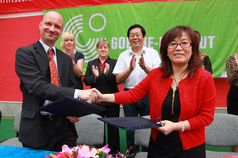 2012年9月24日,人大附中實驗小學與德國文化中心歌德學院“歌德課堂”項目合作簽約,學校成為“歌德課堂”合作學校。(海