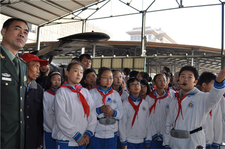 2013年10月我校的小講解員在軍博為各地游客進行講解。