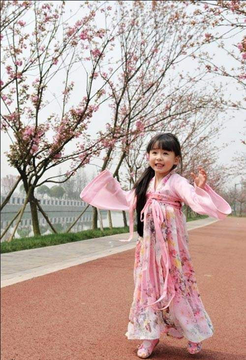 除了這個可愛的小女孩,眾人也對她身上的齊胸襦裙很感興趣。據了解,她所穿的古裝被稱為齊胸襦裙,是漢族傳統民族服裝的一種,齊胸襦裙最早見于南北朝,是隋、唐、五代時期婦女們的傳統服裝,之后慢慢淡出歷史舞臺,大約有1000年的歷史。齊胸襦裙一般分為兩種,一種是對襟齊胸襦裙,一種是交領齊胸襦裙。