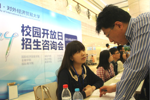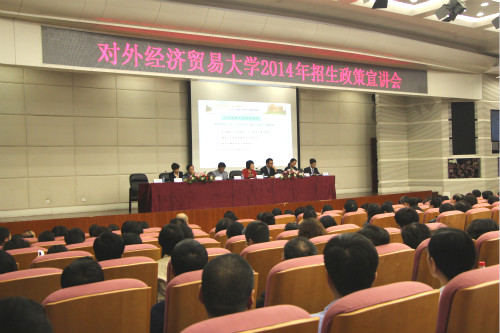 人民網北京4月28日電 (申寧 實習生羅慧瑩)26日上午,對外經貿大學舉行“2014招生政策宣講會暨校園開放日”活動,有近600名家長參加。宣講會上,校黨委副書記文君表示,學校2014年將在北京投放184個招生計劃。