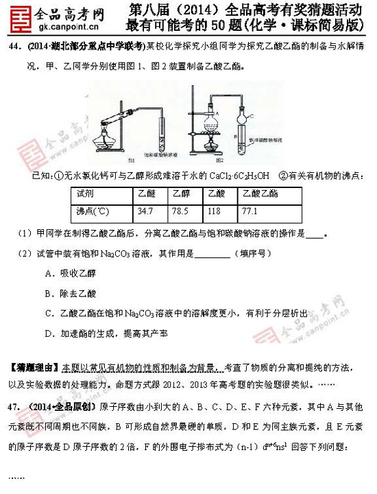 • 人民網>>教育>>高考頻道_教育頻道_人民網_權威全面報道高考>>各科備考>>化學