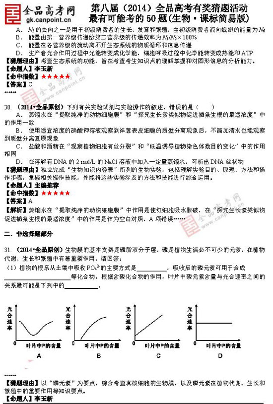 • 人民網>>教育>>高考頻道_教育頻道_人民網_權威全面報道高考>>各科備考>>生物