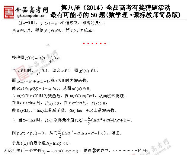 2014高考最有可能考的50道理科數學題【11】