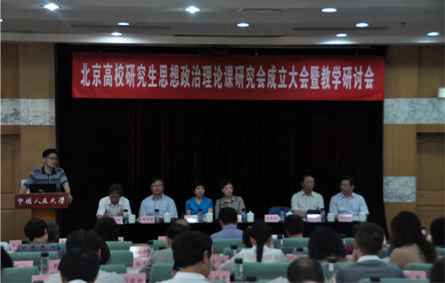 人民網北京6月3日電(熊旭 實習生馬倩)北京市高等教育學會研究生思想政治理論課研究會5月31日在中國人民大學正式成立。這是全國首個研究生思想政治理論課研究會。來自清華大學、北京大學、中國人民大學、北京師范大學等高校馬克思主義學院專家聚集一堂,就當前研究生思想政治課的狀況、問題與對策等展開教學工作探討。