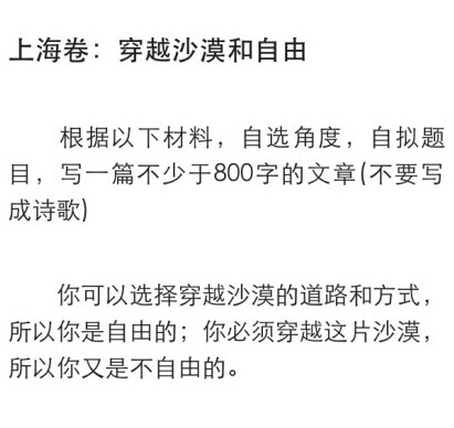 @蒼南派:#上海高考作文#:你媽媽說你可以選擇和哪個女的結婚,所以你是自由的;可是你又必須只能和女的結婚,所以你又是不自由的。