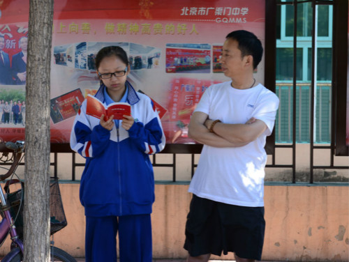 人民網北京6月7日電(熊旭 實習生李小琳)被大雨洗過的天氣清爽晴朗,今天是個考試的好日子。早七點半,記者來到廣渠門中學考點外,此時不少家長帶著考生陸續來到考場。