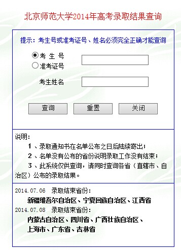 人民網7月8日電 日前,北京師范大學的錄取查詢系統已經開通?忌图议L們可以登陸入口進行查詢。