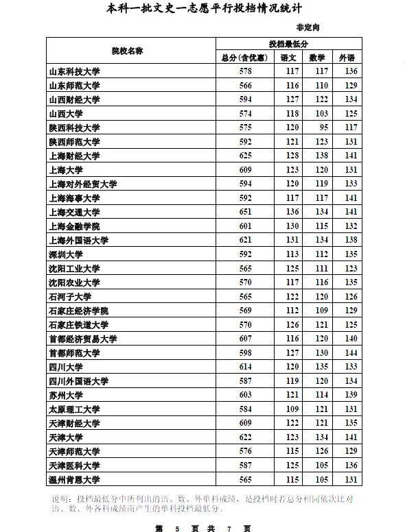 2014年河北省本科第一批錄取院校投檔線【5】