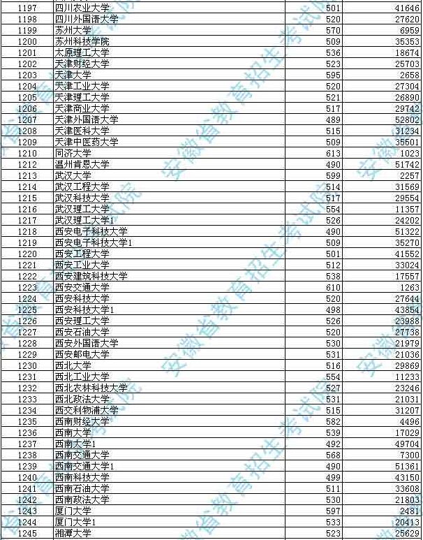 2014年安徽省本科第一批錄取院校投檔線【11】
