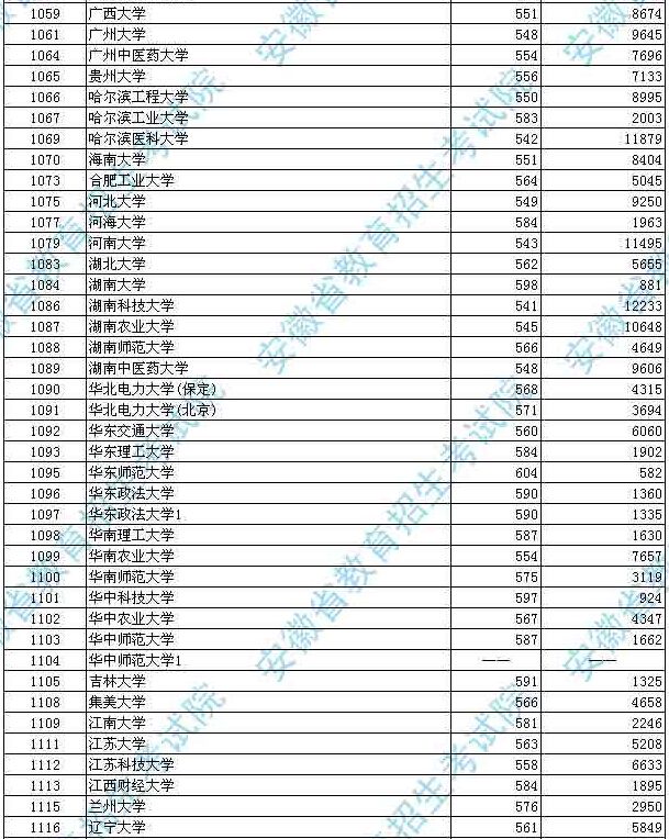 2014年安徽省本科第一批錄取院校投檔線【2】