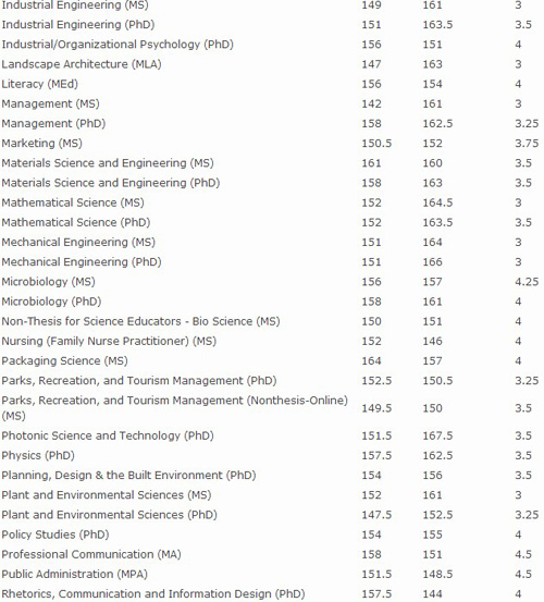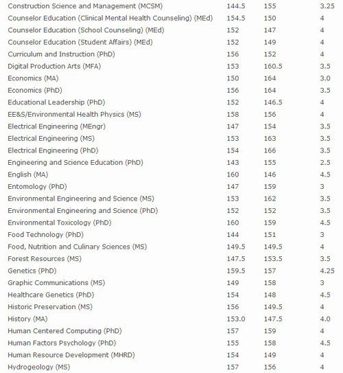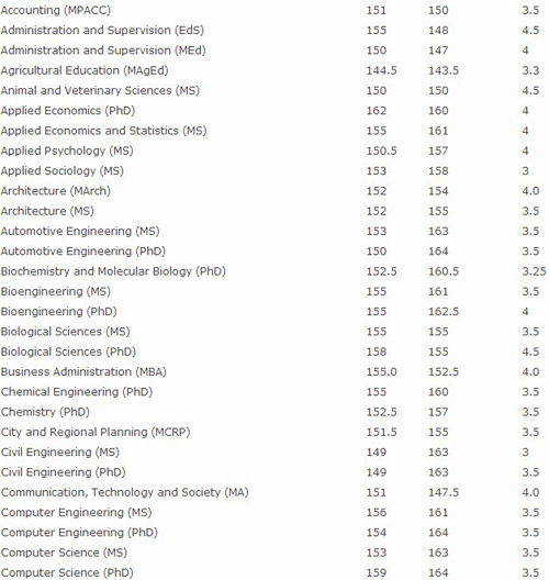 又到了2015年秋季入學申請季了,很多同學在準備最后的GRE或GMAT的沖刺考試,為了更好的給同學們一個參照,陳老師特別為大家總結了2014入學季美國排名前50的大學按不同專業劃分所要求的GRE及GMAT單項及寫作平均要求的分數。希望大家有個自我評估及參考,為確定目標院校及專業做好充足的準備。