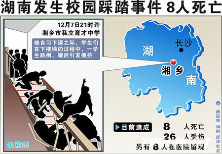 2009年12月07日 湖南湘潭一中學發生踩踏事故 8死26傷