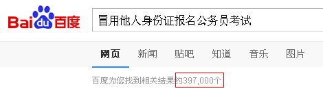 姐搜索“冒用他人身份證報名公務員考試”關鍵詞,可找到相關網頁近40萬個,顯然這類情況并非偶然。有的職位甚至出現利用明星注冊,比如劉國梁、章子怡、范冰冰都出現在報名人員中。