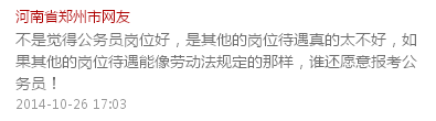 上海市委黨校、上海行政學院人力資源測評研究中心副主任申林也認為,“公務員熱”恰恰說明大學生不滿意當前中國企業的現狀,說明今天很多中國企業還無法為青年人提供良好的工作環境和發展空間。