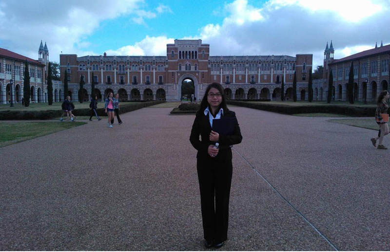 2012年的德州天空碧藍干凈澄澈,草坪茵綠、綠樹成蔭,優美的校園環境猶如星光。符澤慧被公派到德州大學圣安東尼奧分校、萊斯大學、肯尼索州立大學進行交流學習。不管是德州大學的墨西哥風格建筑,還是萊斯大學如城堡林立的老式教學樓,都讓她覺得無比新鮮和羨慕。在美國的所見所聞,讓符澤慧看到了中西教育的差別,這更激勵著符澤慧奮發圖強。在大學后來的日子,她陸續參與商務部、教育部、學校的科研課題,因表現出色被推薦至中科院政策所擔任助理研究員。