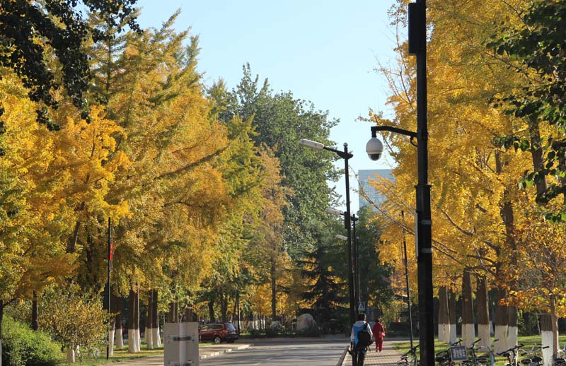 從西門進入人民大學,筆直就是銀杏路,黃葉紛飛便是提醒人大秋天已至。楊松攝影