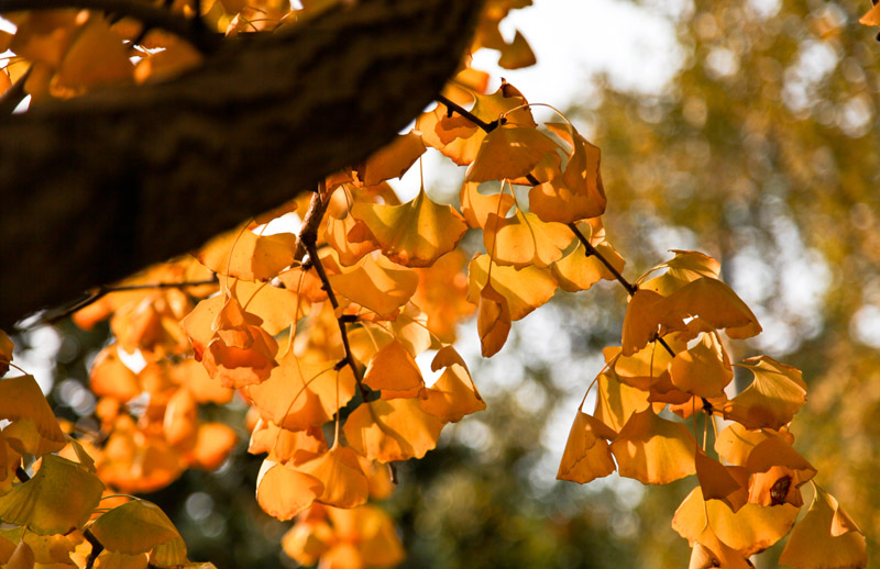 春華秋實,金色代表豐收,武大梅園樹林旁的銀杏樹已經穿上金裝。 張然攝