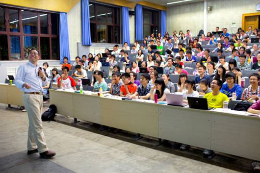 如此歡樂的心理學課程。清華大學心理學系系主任彭凱平教授為經管學院本科生授課。(供稿 吳姝)