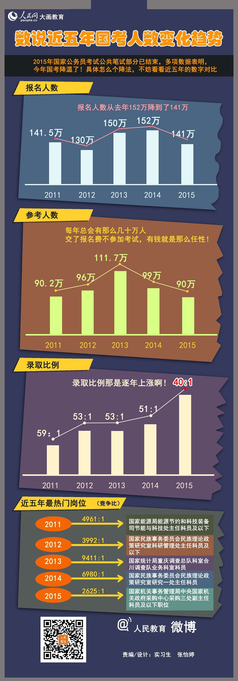 2015年國家公務員考試公共筆試部分已結束,多項數據表明,今年國考降溫了!具體怎么個降法,不妨看看近五年的數字對比。