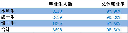 98.3%的總體就業率包括國內升學(30.0%)、出國(境)留學(16.5%)和直接就業(51.8%)。