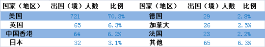 對比發現,北大、清華學子都非常偏愛留學美國,所占比例分別高達62.95%和 70.3%,而且前七名的留學目的地完全相同,只是次序略有差異。