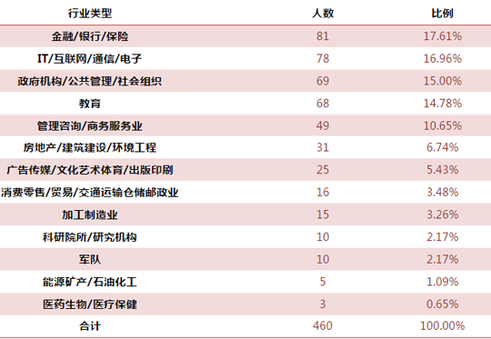 北大本科畢業生首選金融業(17.61%),其次是(16.96%),去往政府管理機構(15.00%)、教育(14.78%)和管理咨詢和商務服務類(10.65%)分列三、四、五名。