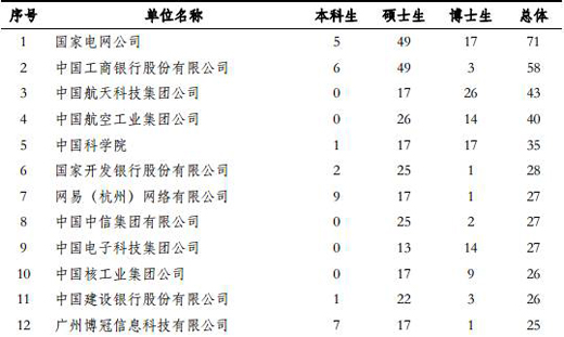 清華列的比較詳細,排了前27名,排前五名的是國家電網、工商銀行、中國航天、中國航空和中國科學院,除了一家銀行,其他都是與科研技術相關的單位機構。