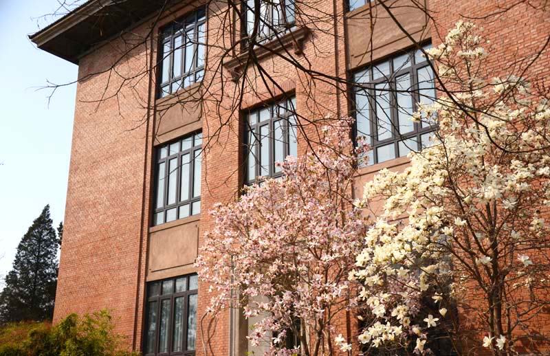 一白一紫的兩棵玉蘭 (清華大學楊可攝影)