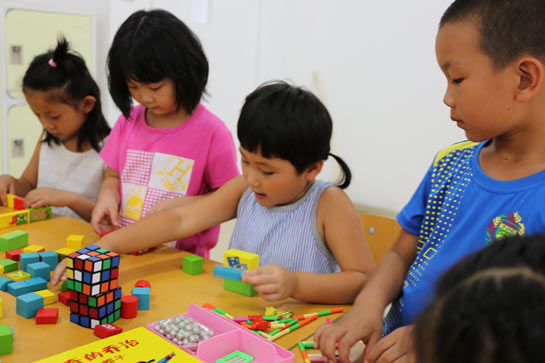一年級的學生注意力時間是有限的,學校將課堂學習時間縮減為35分鐘,全體教師精心設計教學環節,增強生活化與互動性,關注課堂的學習質量。同時,引領教師開展課中操研究,促進孩子合理科學用腦,適當休息。如數學學科結合學習內容增加數字歌、思維游戲等。這既促進了課堂教學實效的提升,更尊重了兒童身心發展規律的具體體現。