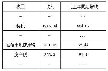 表 2013年1~6月全國主要稅收收入表(單位:億元)