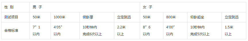凡報考我院治安管理、交通管理、刑事技術、刑事執行四個專業的考生,必須參加由省公安廳和學院統一組織的面試和體能測試,且成績合格。合格標準所稱以上、以內均包括本數。具體見附表1: