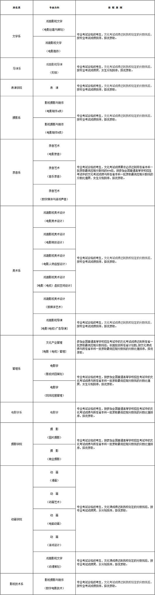 按專業成績排序錄取的各專業方向,文化考試成績院定線不分文理。