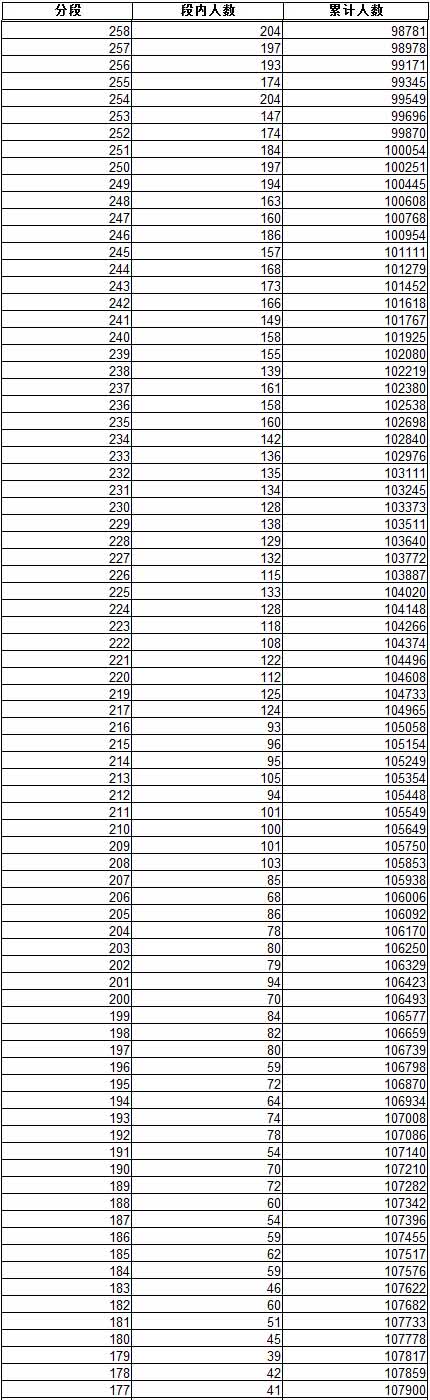 黑龍江省2015年高考文科一分段統計表【6】