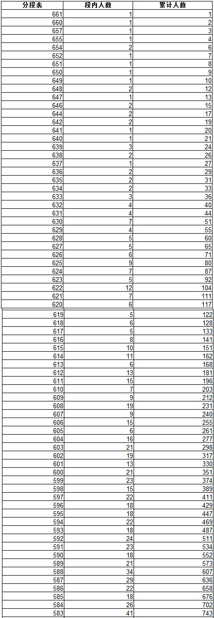 黑龍江省2015年高考文化課成績文科一分段統計表(不含照顧政策分)