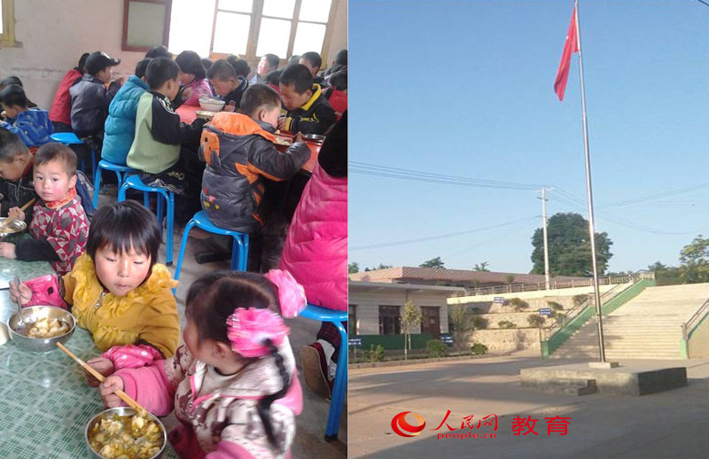 孩子們的生活條件也改善了。從原來露天排隊到現在餐廳進餐,熱騰騰的飯菜,大家吃得特別的香。