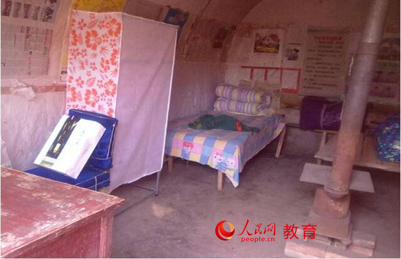 我還對孩子們說,老師也夢想著有個更好的生活空間,但老師現在住在窯洞里面。老師精心把報紙貼在墻上,一點一點地妝點屬于老師自己的地方。