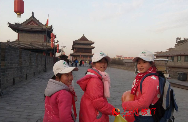 我利用寒假帶著他們來到西安。孩子們第一次走出大山,第一次登上了古城墻。