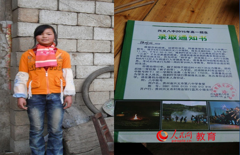 聽到這個消息我真為她高興,興義八中是我們黔西南州最好的高中,而她是辣子樹村第一個考上的孩子。
