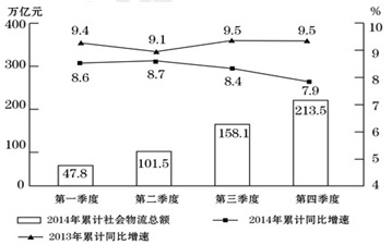 問:2014年全國社會物流總額最高的季度是( )。