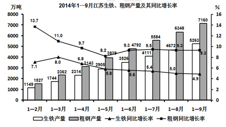 問:2014年6—9月江蘇粗鋼產量同比增長率最低的月份是( )。