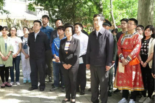 在五四青年節前夕,團中央書記處第一書記秦宜智應邀來到北京師范大學,與校黨委書記劉川生以及教育學部2015級本科教育學1班團支部的同學們一起參加了紀念五四運動97周年主題活動。在五四紀念碑前,他們與同學們一起回顧歷史,緬懷英烈;在京師學堂,他們一起觀看北師大青年運動主題陳列展,陳列展以“愛國救亡、時代先聲”,“胸懷祖國、投身建設”,“改革春風、勇立潮頭”,“木鐸金聲、跨越百年”為時間脈絡,配以圖文、實物和VR虛擬現實技術,全面呈現了建校110余年的歷程。