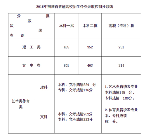人民網北京6月23日電 (記者林露)今天,記者從福建省教育考試院獲悉,2016年福建省普通高校招生各批次控制分數線正式對外發布。具體如下: