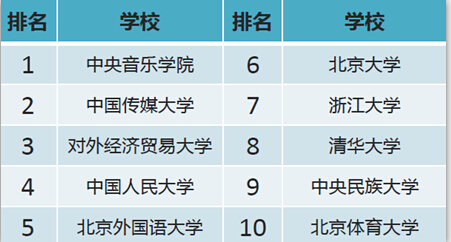 數據顯示,在“最愛穿衣的重點大學TOP10”,中央音樂學院和中國傳媒大學排名前兩位,北大和清華則分別排名第6和第8位。