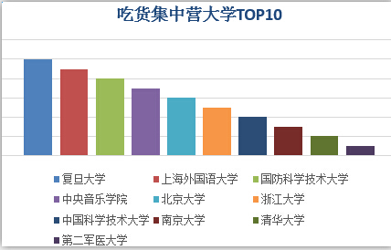 再來看看吃貨榜,“吃貨集中營大學TOP10”中,“復旦大學”赫然位居榜首,北大排名第5,清華則排名第9。