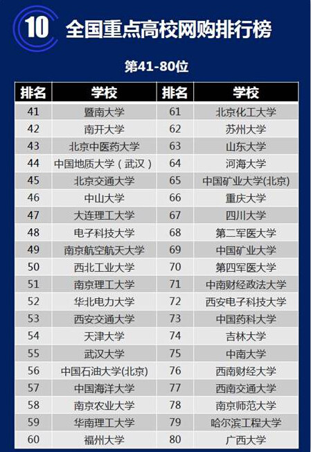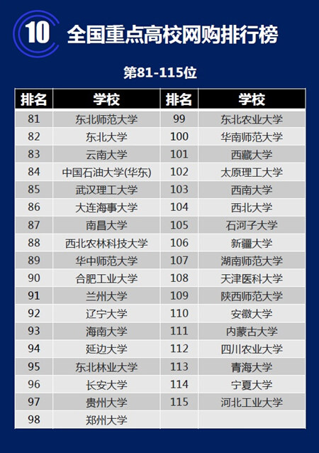 重點大學網購排行:央音重“顏值” 復旦“吃貨”多