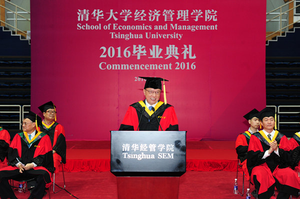 據悉,自2010年起,清華經管學院畢業典禮每年邀請一位演講嘉賓,和畢業生分享他們的智慧與感悟。Facebook公司的首席運營官謝麗爾·桑德伯格、阿里巴巴集團執行主席馬云、耶魯大學校長理查德·萊文、聯想集團主席柳傳志、著名經濟學家吳敬璉、招商局集團有限公司原董事長秦曉都曾來到清華經管學院畢業典禮,寄語畢業生,為學生們上最后一堂“畢業課”。